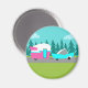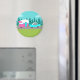 Este Camper Retro / Trailer and Car Magnet cuenta con un moderno y minimalista dibujo personalizado de mediados de siglo que le dejará listo para tomar la carretera abierta. Un homenaje a los años 50, este diseño presenta un auto turquesa vintage con la parte blanca, tirando de un remolque de viaje kitschy a su destino final. El RV retro, perfectamente restaurado, tiene una mitad inferior rosa caliente, la mitad superior blanca y un rayo turquesa que separa los dos. La puerta del lado del camper también es de color turquesa. El acento final es el ala rosa caliente que sobresale desde la parte trasera de esta casa sobre ruedas. Los alegres campistas están conduciendo por un camino gris. La carretera está rodeada de exuberante hierba verde. Como telón de fondo, podemos ver las siluetas verde azuladas de un verdadero bosque de cedros, frente a un cielo acuático con nubes esponjosas y azul claro. Este diseño es perfecto para todos los que vienen de hippies retirados, hipsters recién llegados o cualquiera que quiera revivir algunos recuerdos de la infancia grandiosos. La mejor parte es que nadie pregunta: "¿Estamos ahí todavía?"