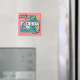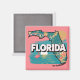 El imán retro de frigorífico cuenta con una viñeta de Florida con flamingo y silueta de estado sobre fondo rosa.