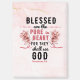 Celebra la pureza del corazón con este elegante diseño inspirado en Mateo 5:8 (ESV): "Benditos son los puros en el corazón, porque verán a Dios". Las bonitas lirios de calila, que simbolizan la santidad y la pureza, están emparejadas con un fondo acuarela de color rosa acentuado por el oro brillante, creando un diseño que irradia calidez y serenidad. Una palabra clave del versículo se destaca en la paleta de colores de inspiración floral, enfatizando la promesa eterna de cercanía a Dios. Esta refinada pieza hace una hermosa adición a tu colección o un regalo significativo para alguien que aprecia la fe y la gracia.