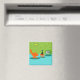 Se dice que los perros tienen propietarios y que los gatos tienen personal. ¡El felino de este Retro Space Age Kitty Magnet no pudo estar más de acuerdo! El estilo de los años 60, de diseño artístico minimalista, cuenta con un elegante gato negro en una sala de estar moderna de mediados de siglo. La sofisticada sala cuenta con una pared de piedra verde. La moqueta es aqua con sombras verde azuladas. El mobiliario de la habitación incluye una luz amarilla y sputnik, una tumbona naranja con una banqueta a juego y un televisor verde con orejas de conejo. El afortunado gato negro se puede ver encaramado en el taburete delante del televisor. ¡Su programa favorito está! En la pantalla de televisión podemos ver a una familia de televisión clásica en blanco y negro resolviendo todos los problemas de la vida en un programa de media hora. Este diseño es perfecto, si lo decimos nosotros mismos.