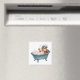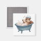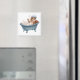 Retro Squirrel Baby Shower imán. La ardilla personalizado, con una gorra de ducha, está en una bañera retro, rodeada de burbujas, fingiendo ser una celebridad de vacaciones.