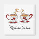 Magnífico adorable con dos tintas sentadas en un ambiente acogedor bajo un vapor curvado, decoradas con puntos de polka y corazones rojos. "Encuéntrame por el té" en escritura decorativa debajo.