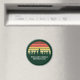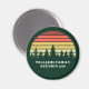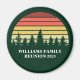 imanes de reunión familiar Guay en verde para todo el grupo en un viaje por la naturaleza o de camping. Estos regalos de personalizado conservan un hermoso atardecer vintage sobre un bosque de bonitos bajo tu texto personalizado.