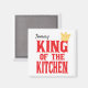Este imán refrigerador para los hombres tiene una corona de rey, el dicho "Rey de la cocina", y un campo de texto personalizado para que su nombre lo personalice.