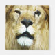 Una pintura digital representa algunos defectos que puede tener un león envejecido. Su mané está desbaratado. Él tiene cicatrices. Él ruge mucho. No hay fondo para esta imagen, puede elegir el color que desee.