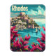 Una descripción cautivadora y nostálgica de Rodas, Grecia, conocida por sus impresionantes paisajes mediterráneos y su rico patrimonio histórico. El diseño presenta las antiguas ruinas de la isla, el encantador casco antiguo con su arquitectura medieval y las aguas turquesas cristalinas. La obra de arte, de estilo vintage, evoca la belleza intemporal y la riqueza cultural de Rodas, invitando a los espectadores a explorar sus pintorescas costas y sus monumentos históricos.