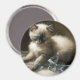 Añade algo de encanto a tu frigorífico o a cualquier otra superficie magnética cuando usas este imán de gatitos dulce. En esta encantadora obra de arte, un gatito siamés es capturado en un momento juguetón, maravillosamente enredado en una cinta azul pálido y lavanda. Con un fondo rico y marrón oscuro, la piel clara del gatito y sus delicados rasgos destacan por su sorprendente contraste. Sus patas están atrapadas en la cinta, revelando la naturaleza alegre y curiosa de este pequeño felino. La pintura rebosa de un antiguo patrón, con un lavado preciso y un uso experto de la luz y la sombra. Disfrute del encanto y el capricho de las alegres payasadas de este gatito adorable en el "Ribbon Tangle", un cuadro que encantará y encantará a todos los que lo contemplen.