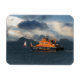 El equipo de pilotos salvavidas RNLI está en la bahía de Devon, mientras que el Torbay Airshow está en funcionamiento. Fotografía entre las famosas Rocas Thatcher. Un par de veleros pasan por el barco.