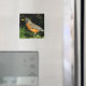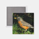 Hermosa ave Robin Redmama saliendo temprano en el día de primavera. Imán.