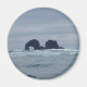Rocas gemelas vistas en un día nublado en la costa. Playa Rockaway, Oregón.