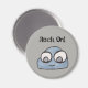 Este diseño cuenta con un adorable ilustracion de roca infantil. Le gusta sonreír. El fondo amarillo alegre se puede personalizar a cualquier color deseado. El mensaje "¡Rock On!" también se puede personalizar. Ideal para cualquier localizador o refrigerador