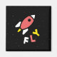 Retro, pop, colorida creación de un cohete, un imán cuadrado. Tema especial del coloreado rojo, amarillo y blanco, con un simple pero elegante icono de estilo artístico. Estilo pop retro, diseño único.