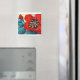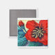 Big Red es una pintura mediática mixta de un hibisco sobre un imán cuadrado.