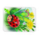 rojo, linda mariquita sobre un fondo de hierba y flores