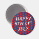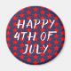 Patrón de estrellas Guay rojas y azules y el texto: Feliz 4 de julio.