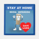 Magnet con un mensaje de tipografía. Rollo de papel higiénico vacío con primer mensaje de seguridad. Quédate en casa. Contacto admin@giftsyoutreasure.com