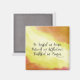 Magnet con escritura de cita inspiradora representa un fondo abstracto marrón y verde claro. Presenta un motivador Verso de la Biblia de los romanos 12:12, "Sé alegre en la esperanza, paciente en aflicción, fiel en la oración".