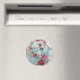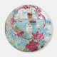Elegante, elegante, vibrante y clásico diseño floral. Rojas, rosas rosas rosas, flores azules con una paloma blanca cargando una carta en un paisaje marino.