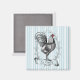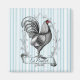 El Rooster francés Le Poulet es una imagen vintage de una casa de campo francesa sobre el algodón francés azul y blanco verde azulado.