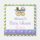Hermosos regalos y accesorios para baby shower de Carruaje de Bebé Verde Zig Zag por ITD Colors Galore presenta nuestro patrón único de zig zag de color lima y blanco con nuestra textura de firma en el fondo con una banda púrpura texturizada y una pieza central decorativa que presenta un adorable cochecito de bebé vintage que sostiene un osito de peluche adorable. En la parte posterior, el patrón de chevron continúa con una banda púrpura que tiene un patrón de juguetes para bebé lindos que corren a lo largo de ella. Mantenga un registro de todos los primeros de su bebé, comenzando con su baby shower Chevron Kiwi Bash.