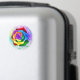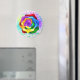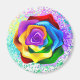 Rosa grande y floreciente con pétalos de arco iris sobre fondo blanco, pintado con salpicaduras de pintura colorida y brillante. 3.ª