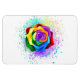 Rosa grande y floreciente con pétalos de arco iris sobre fondo blanco, pintado con salpicaduras de pintura colorida y brillante. 3.ª