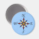 Imán de temática náutica con rosa de brújula sobre fondo azul