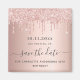 Una chica y de moda Salven el imán de la fecha para una fiesta de cumpleaños número 40 (o cualquier edad). Un fondo femenino rosa, dorado rosa, de aspecto metálico, adornado con falsos goteos de purpurina de oro rosa. Personalice y agregue una fecha y nombre/edad 40. Letras de color oro rosa oscuro. El texto: Save the Date se escribe con un gran guión de estilo escrito a mano.
