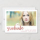 Elegante imán moderno de invitación de graduación fotográfica. Fuente manuscrita en negrita (el Relieve metalizado en oro rosa es un efecto fotográfico impreso) con la palabra "graduado" con un diseño de marco fotográfico. Reemplace la foto de ejemplo por la suya propia. Color blanco y rosa dorado. Otros estilos y colores disponibles.