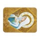 Este diseño está inspirado en una hermosa calcomanía pintada y bordada sobre una vestimenta católica romana usada para masas de la Madre Bendita. Lleva un tallo de mentiras en las manos, un ramo de rosas la envuelve, un halo corona la cabeza.