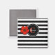 Imán rayado blanco y negro con diseño monograma rosa en el centro. Puede personalizar este elemento agregando su nombre o inicial utilizando la plantilla personalizada.