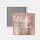 Faux rosa purpurina de oro con un oro rosa y rosa oscuro para tu boda ahorra la fecha pequeños imanes cuadrados. El tipo de letra decorativa "Save the Date" es un estilo clásico de caligrafía lujosa combinado con un estilo moderno de fuente. El purpurina glamuroso y el arte digital del Relieve metalizado se imprimen como una foto en este imán.
