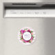 Un imán de cita boda personalizado con las iniciales de la pareja. Diseñado con un ramo de flores compuesto por rosas rosa claro y adornos rosa oscuro con muchas hojas verdes y exuberantes. Un marco se colocó encima para colocar el texto de su personalizado dentro. El fondo es una suave tónica rayada rosa pastel.