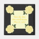 Elegante pintura de cuatro rosas amarillas pálidas impresas en un borde negro, con marcadores de posición para Guardar la fecha, nombre de novia y novio, y fecha de boda en un centro de marfil, impreso en imanes.