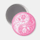 Este hermoso diseño de yin yang cuenta con dos estilizados rosas tribales. Los torbellinos rosados intrincados decoran ambos lados de este símbolo tradicional creando un patrón delicado. Las dos flores fluyen desde el fondo de la lágrima a ambos lados, con hojas que crecen de los tallos. Este yin yang único hace un diseño imponente impresionante y elegante.