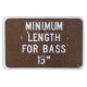 Fotografía de un cartel de pesca que dice: "Longitud mínima para el trasero, 15". Nota: esta imagen no se transferirá bien a un imán más pequeño.
