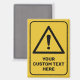 Signo de advertencia amarillo en forma de triángulo con signo de exclamación. Color de fondo personalizado. Texto personalizado.