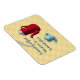 Este imán retro tiene una buena señal de café de medio siglo con una cafetera percoladora retro con el dicho "Café bueno significa un buen día". El diseño es un fondo de damero amarillo, una taza azul llena de café y un percolador de café rojo vintage. Todo el diseño se realiza en texturas de impresión vintage clásicas. Este imán es ideal para alegrar cualquier decoración moderna de cocina de mediados de siglo.
