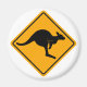 Signo de advertencia de canguro clásico sin texto. Dibujo en forma de diamante en el camino en amarillo y negro.