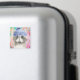 Rara vez Roxy se sienta todavía lo suficiente como para un retrato. La mayoría de las noches se le puede encontrar saqueando los basureros en el distrito Ballard de Seattle. Raccoon de acuarela digital en retrato de abeja de punto azul en fondo multicolor