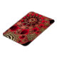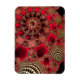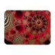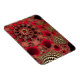 Un brillante diseño fractal con espirales ornamentales de rojo oscuro y vívido, recubierto de fibra de oro como conchas metálicas y lleno de rúbricas brillantes.