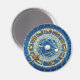 Guau, tu astrólogo o abanico de horóscopo favorito con este impresionante tesoro de un imán. La rueda zodiaca se ilustra en un diseño celeste del mundo antiguo con signos estelares en un fondo azul del cielo nocturno. Arte de Frizio Anahora, CC0.