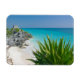Pirámide maya sobre una playa de arena blanca y aguas azules en Tulum, México, al sur de Cancún.