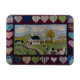 Este imán flexible presenta una escena campestre Americana tomada de una alfombra teñida a mano y enganchada a mano creada por este fotógrafo.