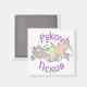 Hermoso mapa de la Federación Rusa, de color y con representación a mano, con la ubicación de la ciudad de Pskov marcada con una bandera. El nombre de la ciudad también está en ruso. Familia rusa única o regalo de adopción para familias con hijos de Pskov. Diseñado por Hendrika de www.RedThreadMaps.com