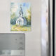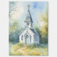 This serene countryside scene captures a quaint white chapel nestled at the end of a winding dirt path, surrounded by blooming wildflowers and softly swaying grasses. Rendered in a delicate watercolor style with painterly splashes and gentle light, the composition evokes peace, nostalgia, and quiet faith. The wildflower meadow—full of bluebells, daisies, and soft greens—creates a dreamy, almost ethereal foreground that leads the viewer’s eye toward the charming steepled church under a calm blue sky. Perfect for evoking a sense of retreat and reflection, this design works beautifully as seasonal decor, especially for spring and Easter themes. It pairs well in cozy cottagecore spaces or country-inspired settings, bringing warmth and spiritual calm to any room. The golden cross atop the steeple and gothic-style arched doorway add vintage architectural charm while maintaining a harmonious balance with the natural surroundings. This is an inviting visual retreat into simplicity, faith, and nature. AI generated artwork.