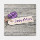 Ilustracion de Año Nuevo persa moderno: jacinto púrpura con Año Nuevo "Feliz Noruz" en un ambiente rústico de madera.