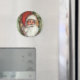 Este imán de retrato de Santa tiene una tarjeta de saludo y un pegatina para coincidir.