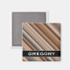 El diseño de este imán se inspira en una estribilla borrosa de colores rústicos como el marrón, el gris y el beige. También cuenta con un nombre personalizado.