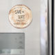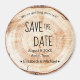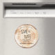 Personalice esta boda única Guardar los imanes del círculo de fechas. Cuenta con un disco de corte de granos de madera impreso y una tipografía caprichosa perfecta para su boda rústico.